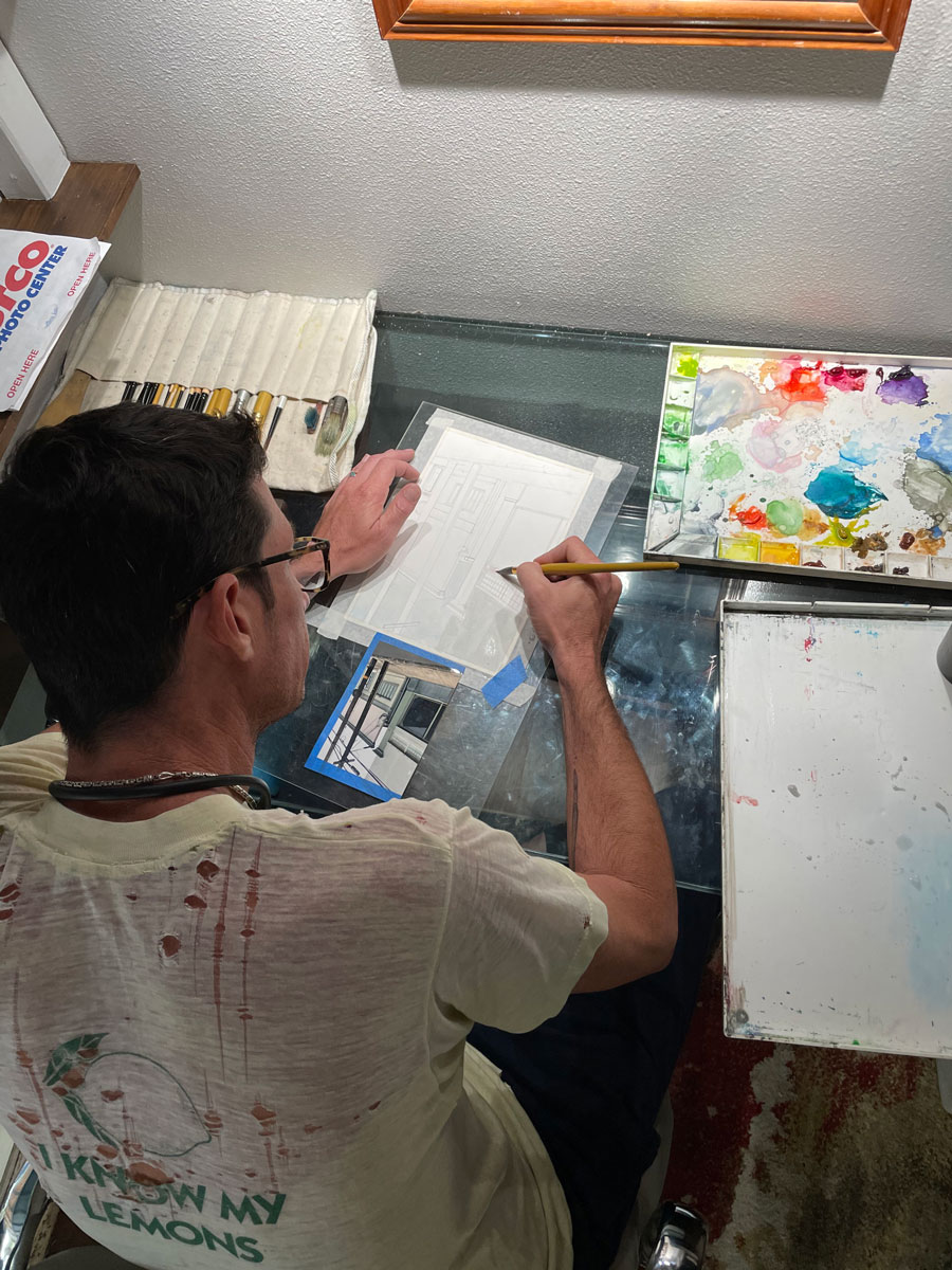 Calen is a quiet, reflective and ambitious artist. Calen is a member of The American watercolor society and Hui No’eau visual arts center. Calen is a self-taught artist and offers a unique style. He enjoys watercolors for the technical aspects as well as the pure enjoyment of mixing paint with water. Creating his own textures and colors with the medium. His main focus is to capture Hawaii’s historical scenes before they disappear.
