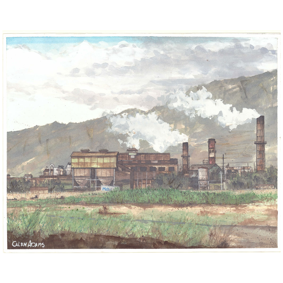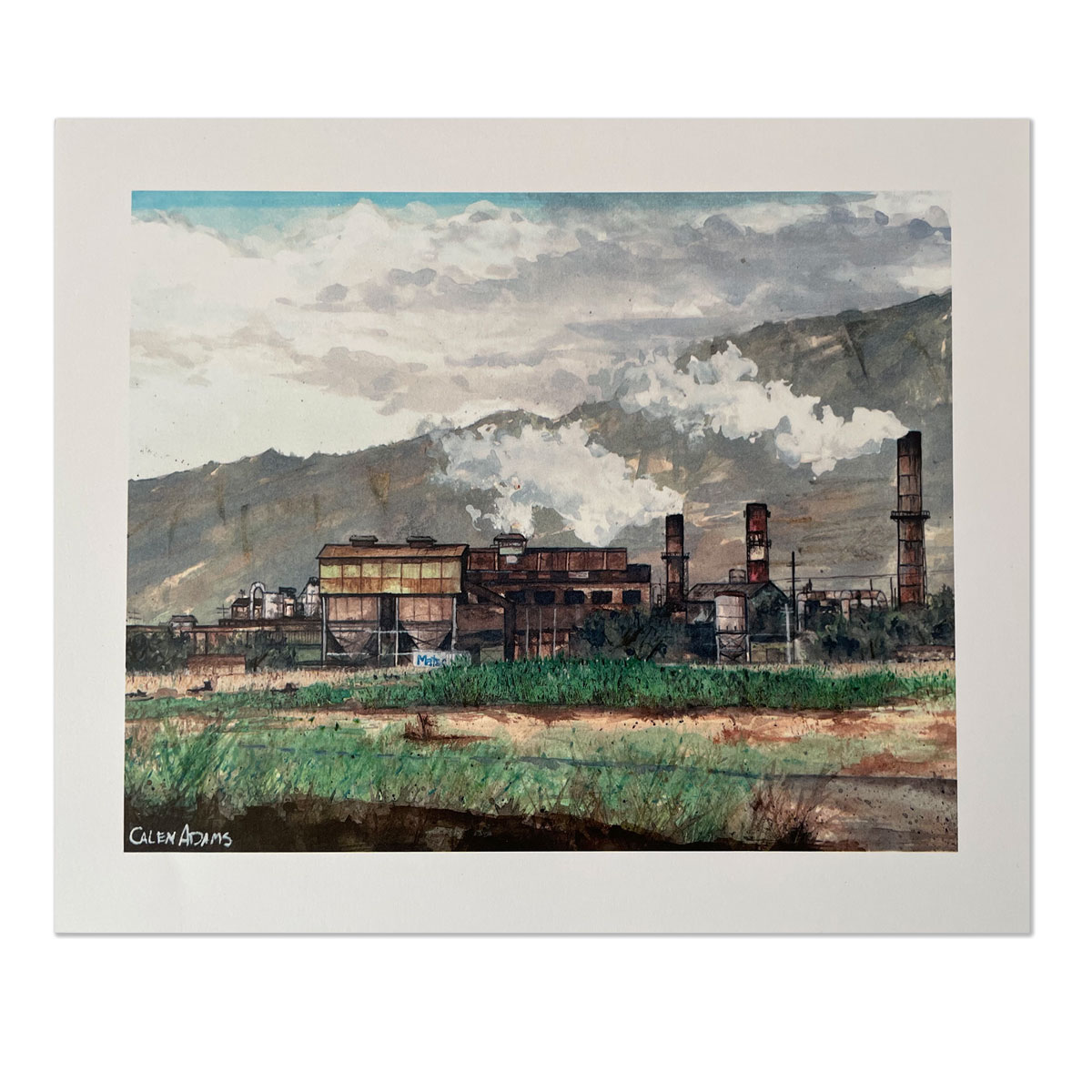 Watercolor painting of Pu’unene Sugar Mill on Hansen Road, Maui. Signed watercolor paper prints are available in three sizes and come ready to frame. They are printed in Hawaii and include free shipping. Please note that other printing options are available; just reach out to Calen for larger sizes and different printing options.